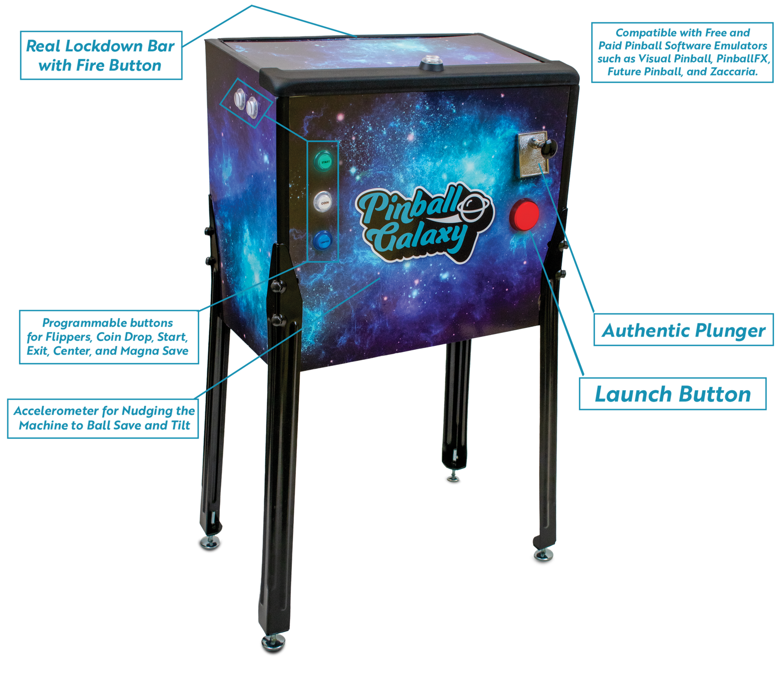 The Pinsim VR pinball controller is a physical cabinet interface, often in a "stubby" or mini-cabinet form factor, that players use with a VR headset to experience a more realistic pinball simulation. Featuring a mechanical plunger with Nudge and Tilt for realistic game play. It measures 1/4 the size of a full pinball cabinet, making it portable and a space saver. It also features programmable Flipper, Magnasave, Start, Coin, Center, and Launch Buttons. Authentic Lockdown bar with fire button adds a realistic physical dimension to 100s of pinball tables via emulators such as Visual Pinball and Future Pinball.
